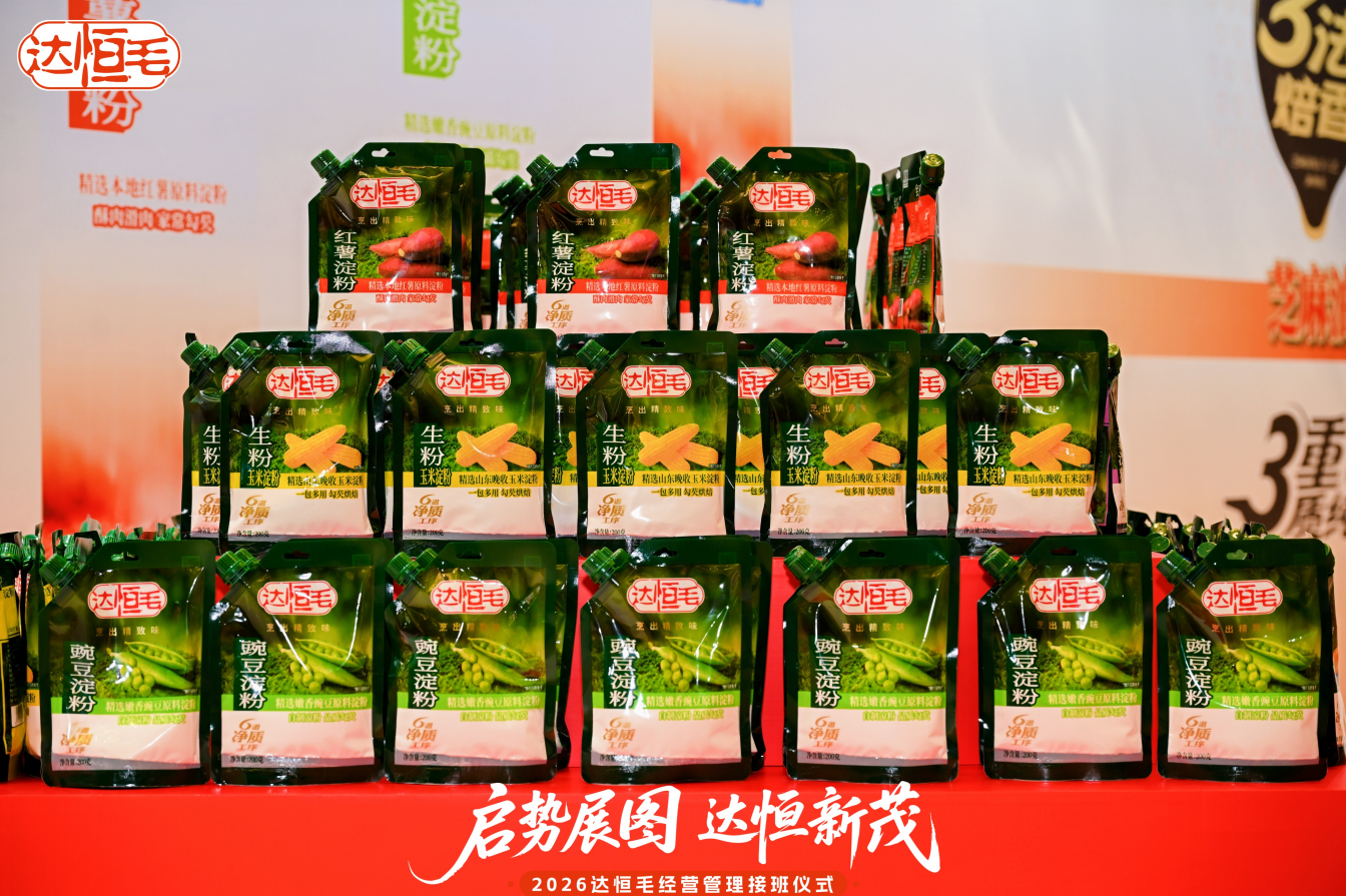 本次接班仪式现场,达恒毛旗下多款升级新品集中亮相,成为与会嘉宾关注的焦点。除了在发言中被提及的花椒油、芝麻油等产品外,采用新包装的淀粉等系列产品也一同展出。