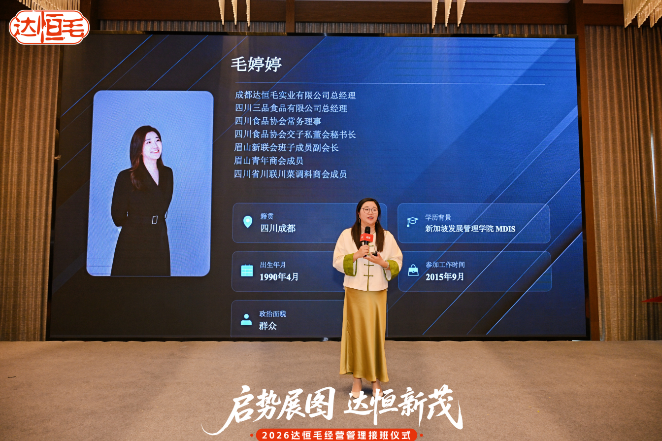 近日,以“启势展图,达恒新茂”为主题的2026年三品·达恒毛经营管理接班仪式在眉山举行。