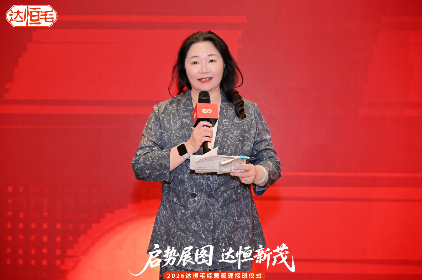 副董事长蔡春艳感谢多年来共同奋斗的伙伴,并分享作为母亲对女儿成长过程的观察。她现场宣读一封家书,其中总经理毛婷婷回顾个人成长经历,感谢父母的养育与教诲。随后,蔡春艳正式将达恒毛的全部管理权与决策权移交给总经理毛婷婷。